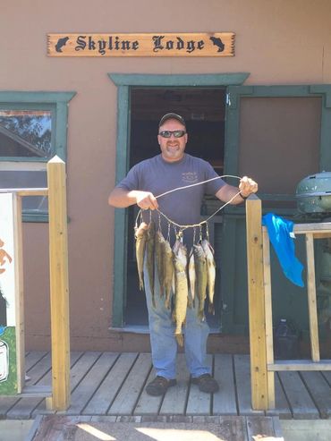 Skyline Lodge rates for the 2026 season are $900.00 per person for a full week (Saturday-Saturday), which includes your cabin, 16' aluminum boat with new 15 hp Yamaha outboard motor and comfortable swivel seats, plus all boat gas and bait. For those that bring their own boat, we offer launching, docking and up to 20 gallons of boat gas and bait at no additional charge.